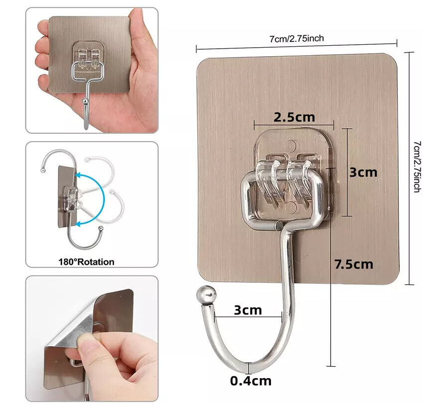 • ?Stainless Steel Hook?: The stainless steel hooks part can rotate 180°, can use under the cabinet to hang stuffs and save more space, convenient for kitchen storage, but also can be used as ceiling hooks, coat hooks, key hooks, plant hook, picture hooks in office and bedroom.