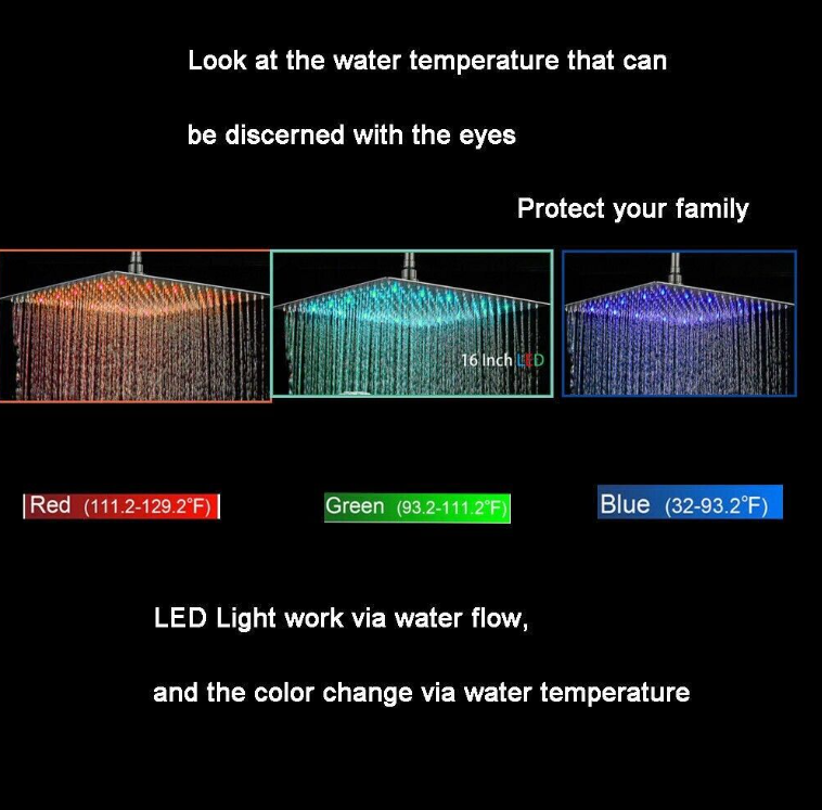 Corrosion Resistant, Adjustable Angle, LED Lights, High Pressure, Rainfall, Bacteria Resistant
