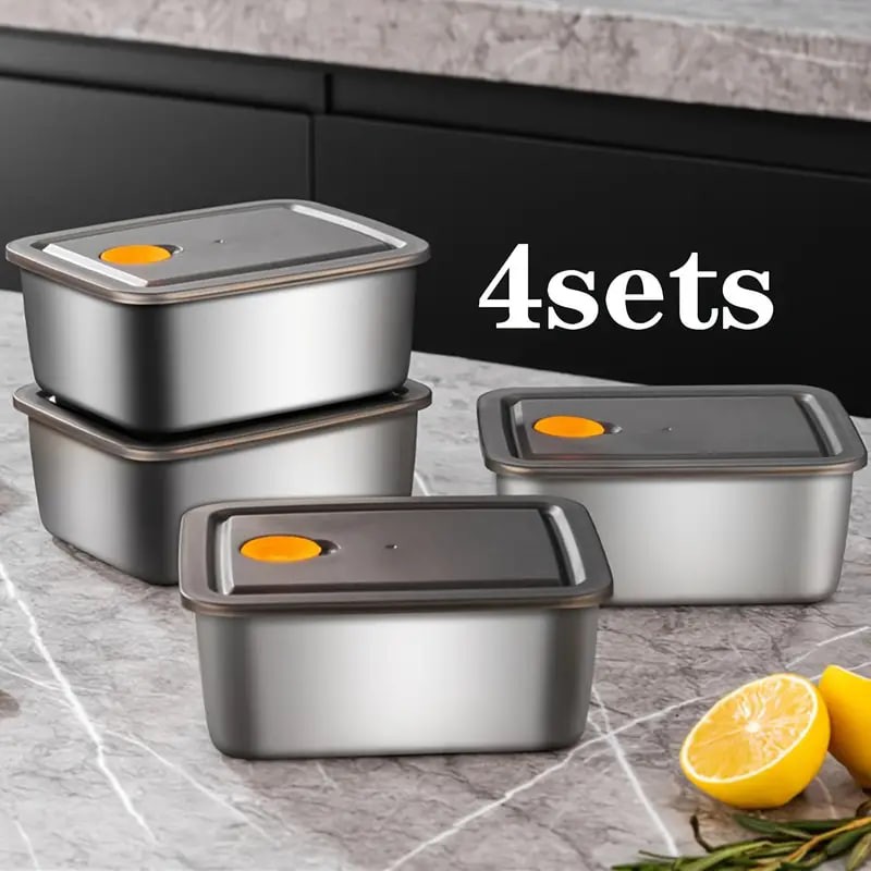 4 Sets Stainless Steel Fresh-keeping Box, Refrigerator Cooler Storage Box, Sealed Anti-overflow Bento Box, Picnic Lunch Box, Meal Prep Square Box, For Camping Picnic And Beach, Home Kitchen Supplies
