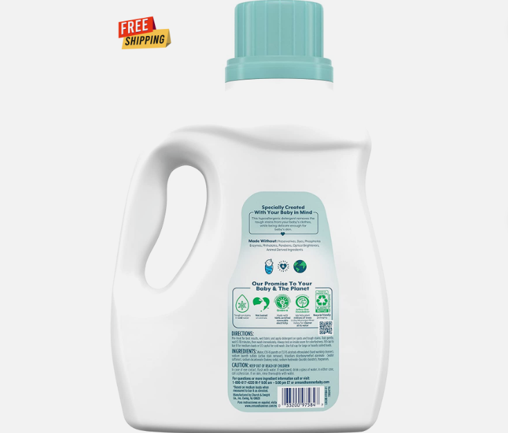 • Cleans tough stains in cold water. This hypoallergenic baby laundry detergent is ideal as a High Efficiency (HE) laundry detergent liquid for a powerful clean that’s gentle on newborn skin. Contains trusted ARM & HAMMER Baking Soda