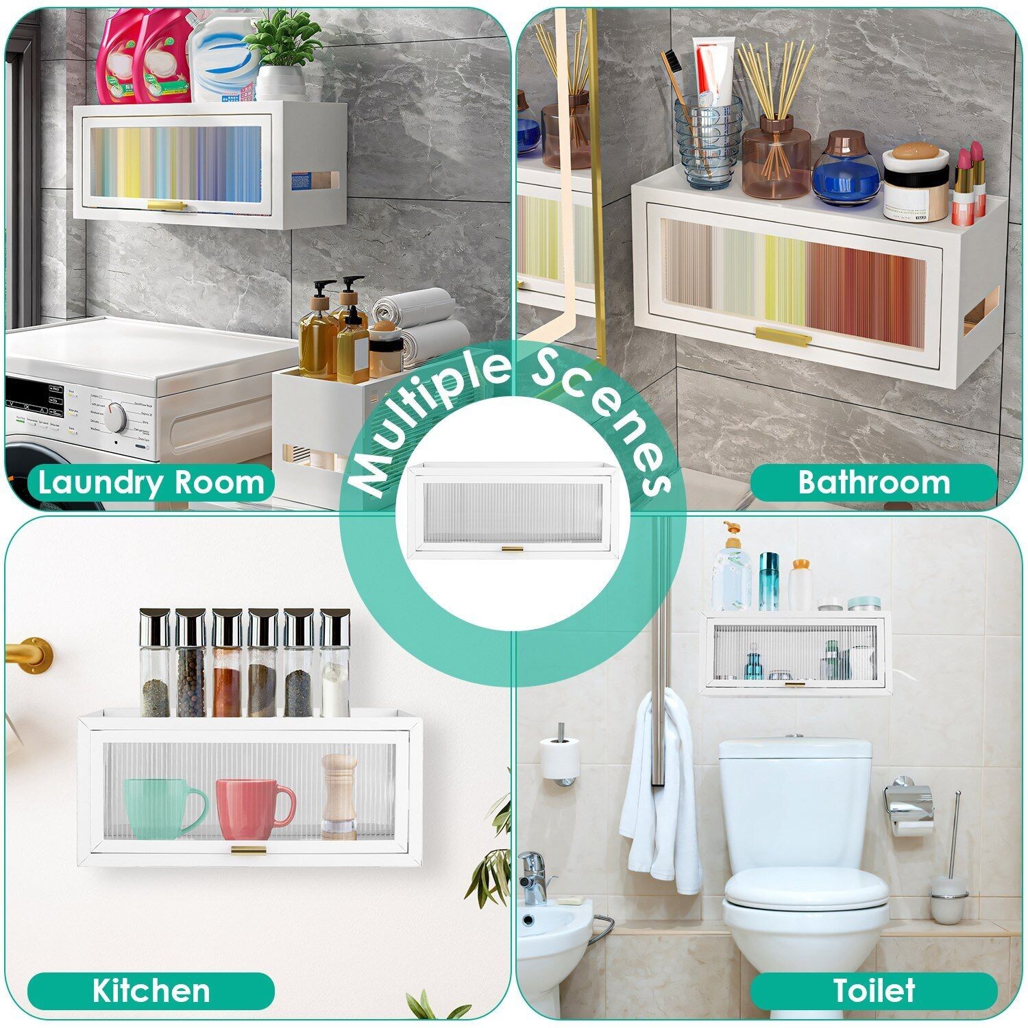 Bathroom Wall Cabinet Magnetic Door Over The Toilet Space Saving Storage Cabinet