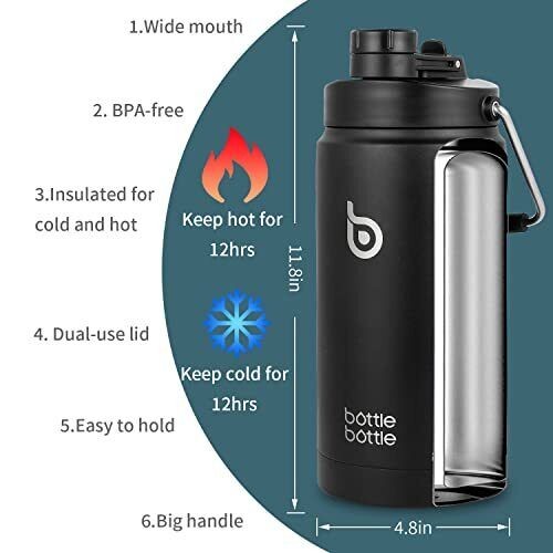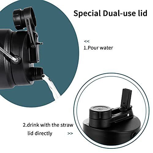 BOTTLE BOTTLE Insulated Water Bottle 64 oz with Straw and Dual-use Lid Half G...