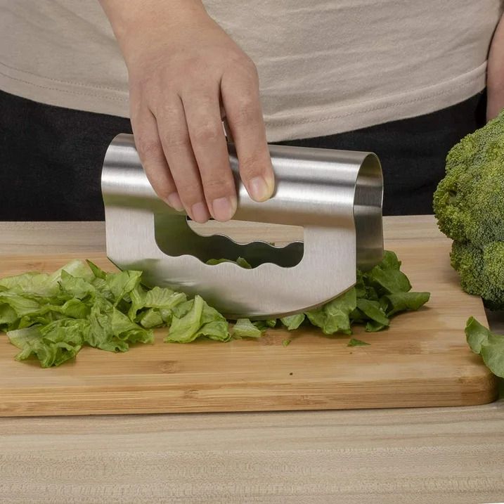 - Can be used for mincing or chopping herbs, onions, garlic, vegetables and other food on a cutting board or in a bowl.