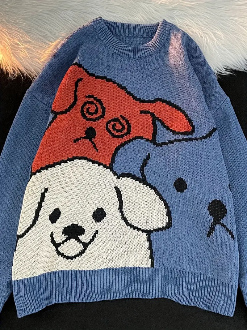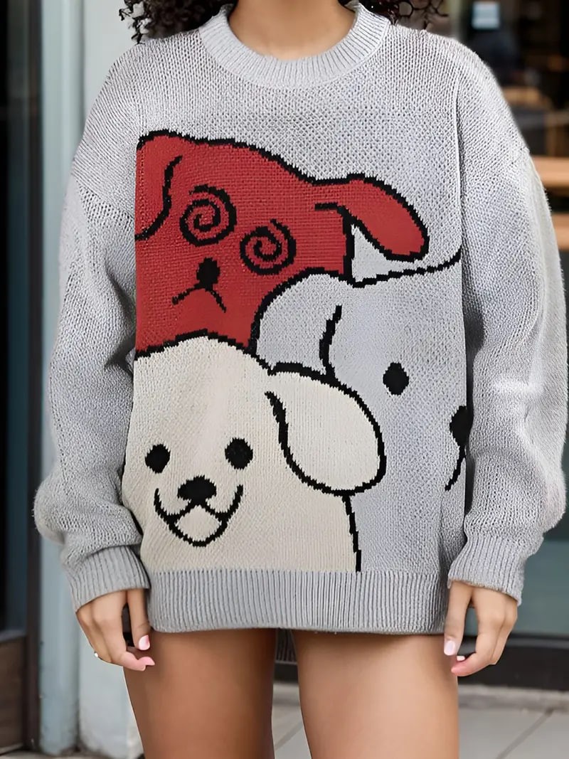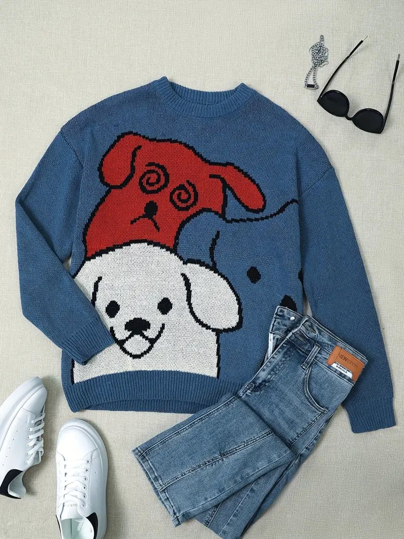 Cartoon Dog Casual Crew Neck Sports Sweater, Longs Sleeve Casual Pullover Sweater, Women s Tops details 0