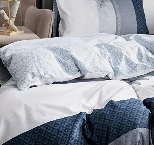 ★REVERSIBLE DESIGN – Modern patchwork pattern and blue shade color, you can change the pattern of the front and back of the duvet cover by mood. A color, a mood