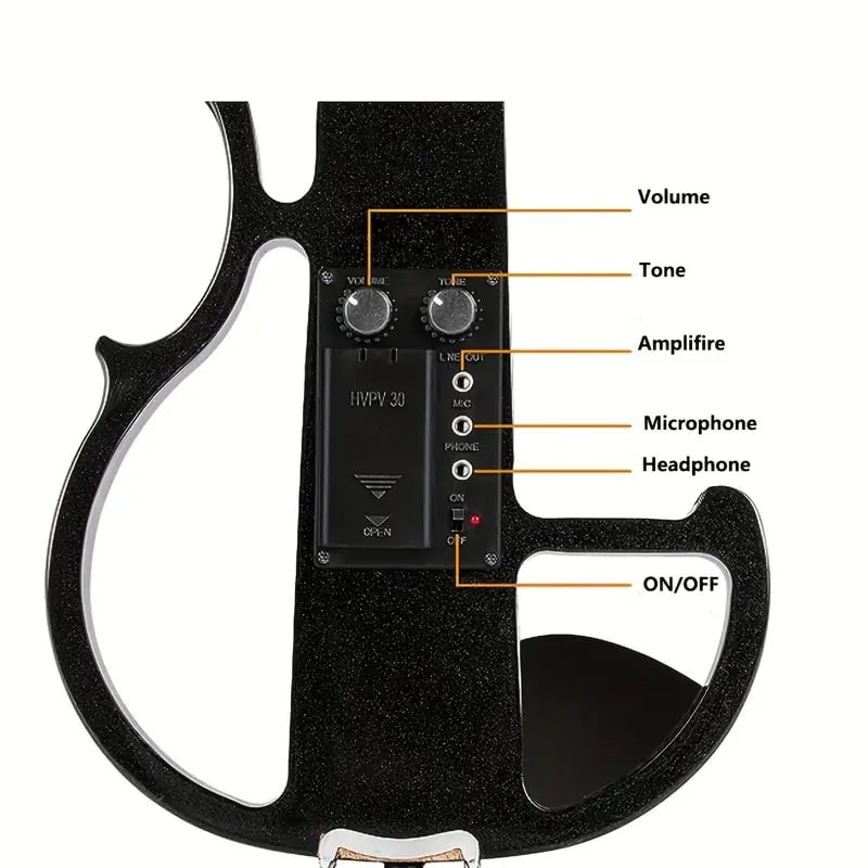 electric violin full size 4 4 black silent electric violin solid wood metallic electric fiddle beginner kit for adults teens details 9electric violin full size 4 4 black silent electric violin solid wood metallic electric fiddle beginner kit for adults teens details 9