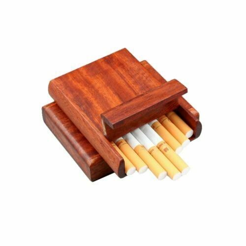 Handmade Exquisite Cigarette Box Handcrafted Wooden Case Hold 10 Cigarettes HO