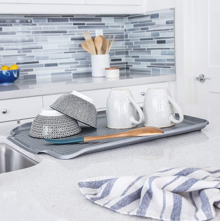 Large Dish Drainer Board, Metallic Silver