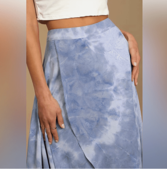 Lulus Exclusive! No need to daydream forever! The Lulus Above the Clouds Blue Tie-Dye High-Low Midi Skirt is here to elevate your style to infinity and beyond with its lightweight and breezy woven composition that shapes a high, banded waist and an overlapping silhouette that ends at a flowy high-low hem. Hidden back zipper/clasp.