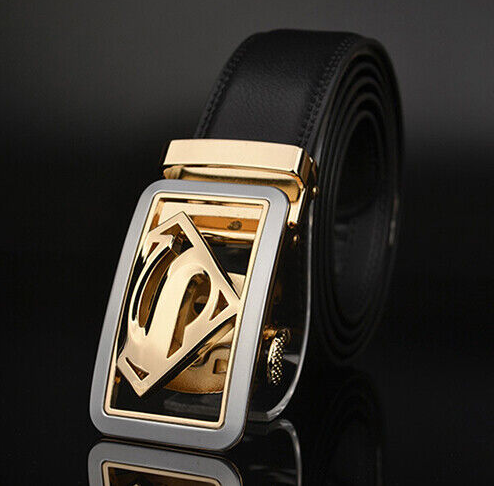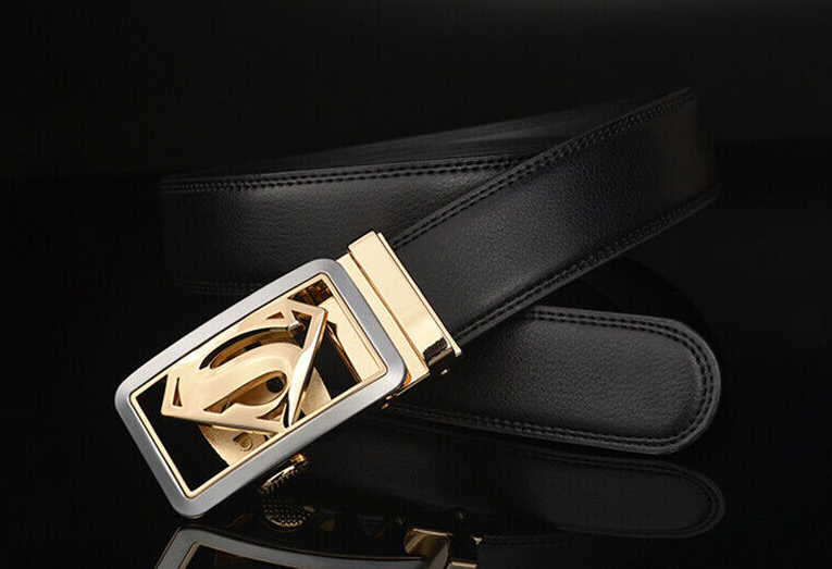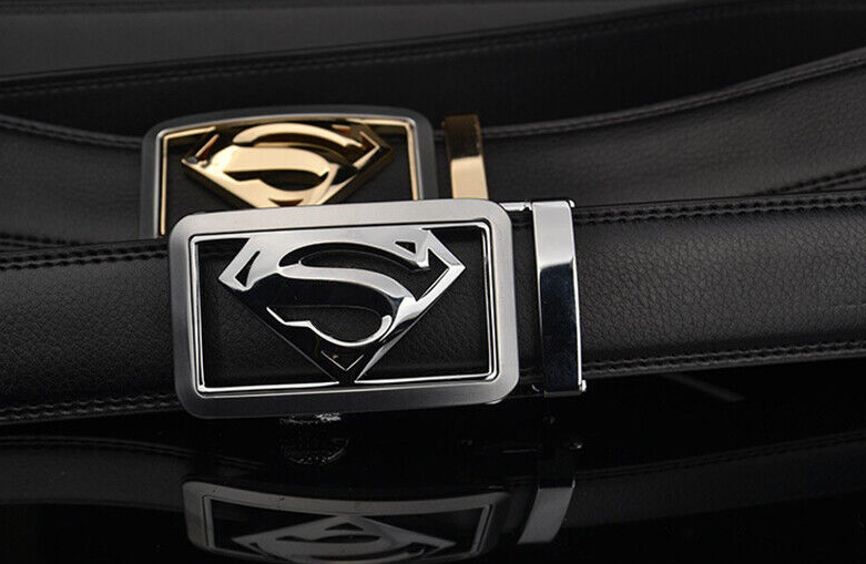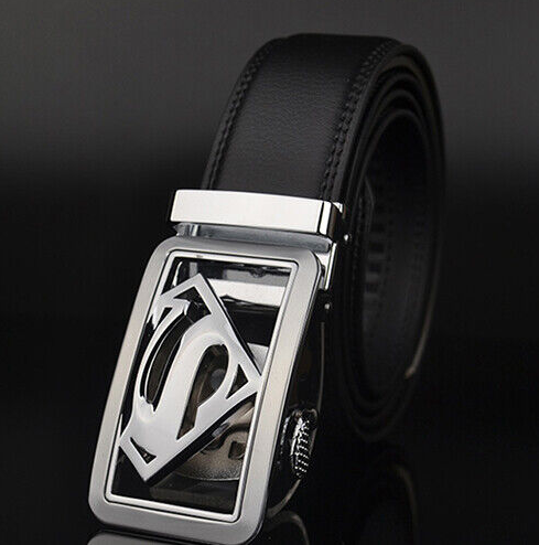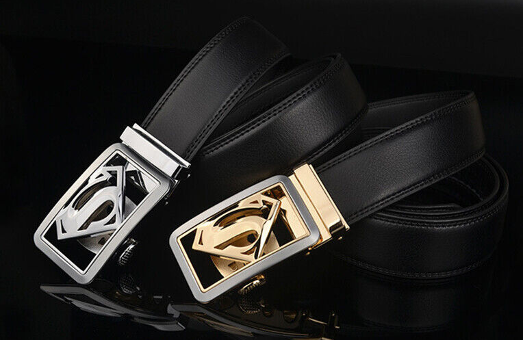 Luxury Men's Superman Automatic Buckle Belt Black Leather Ratchet Strap Jeans