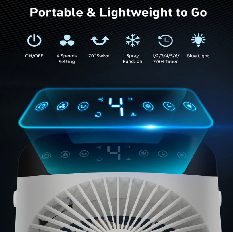 ❄Mini portable air conditioner can save your money and blows cooling wind, keeps your skin moisture and enjoy fresh air, which is very easy and portable to carry & move. It can be multifunctional as a combination of a mini air conditioner, desk fan, misting fan, night light, and humidifier.