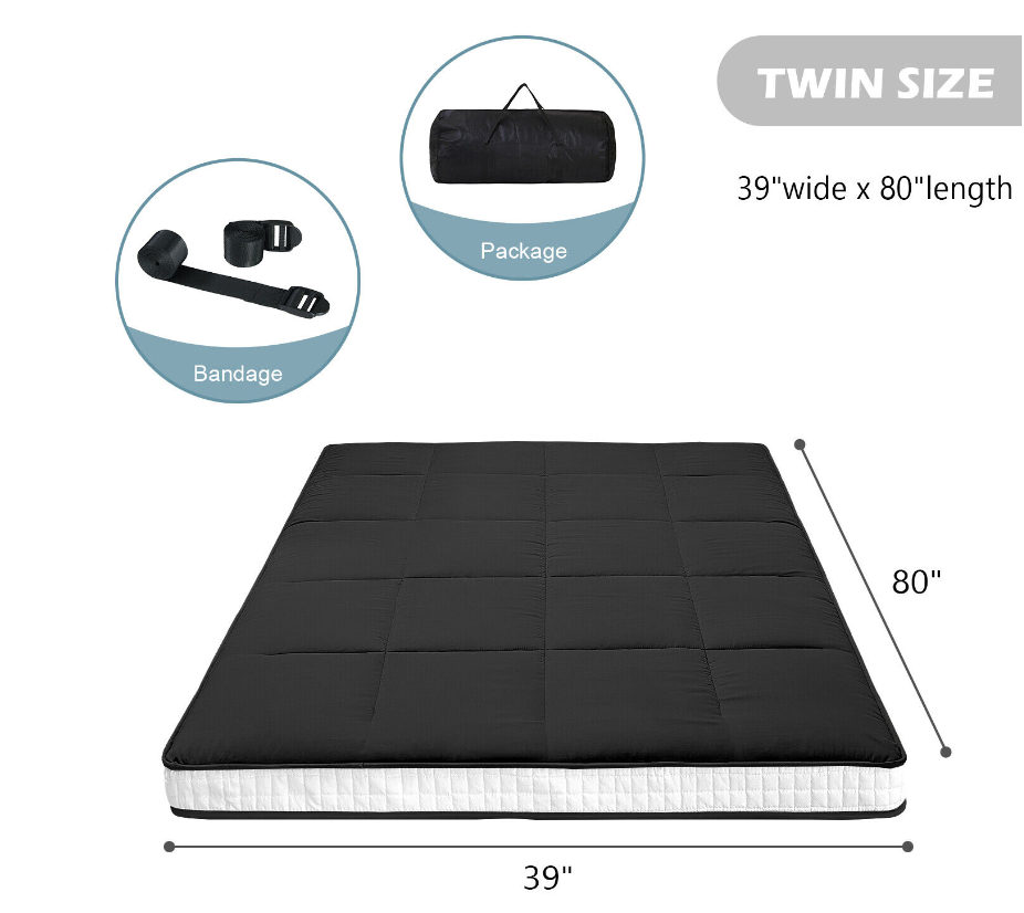 ▶ 【WAHT INCLUDED IN THE PACKAGE】:Buy 1 futon mattress, you can get the 1 same color mattress dustproof cover, 1 pair of bandage, 1 storage bag. With the dustproof cover, you will no longer have to worry about the clean issue of the mattress, which can greatly improve the durability of the mattress. For better storage and carrying, the mattress are equipped with straps and storage bag.