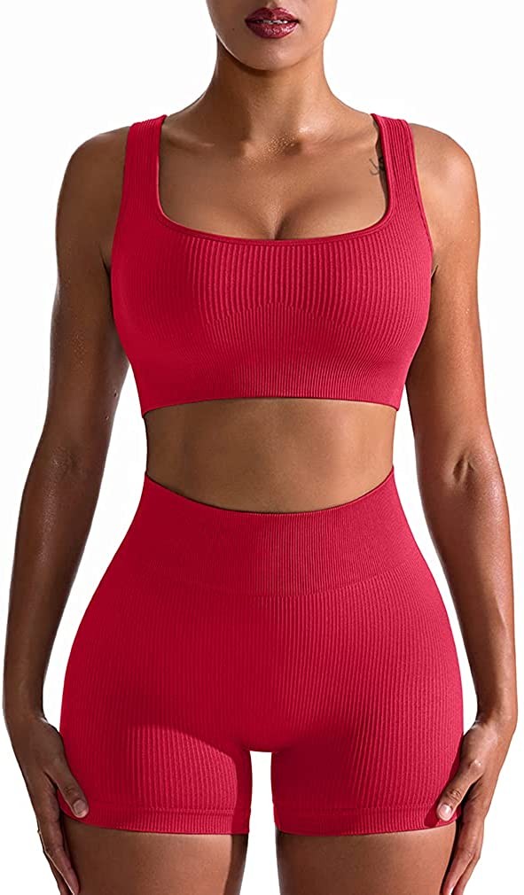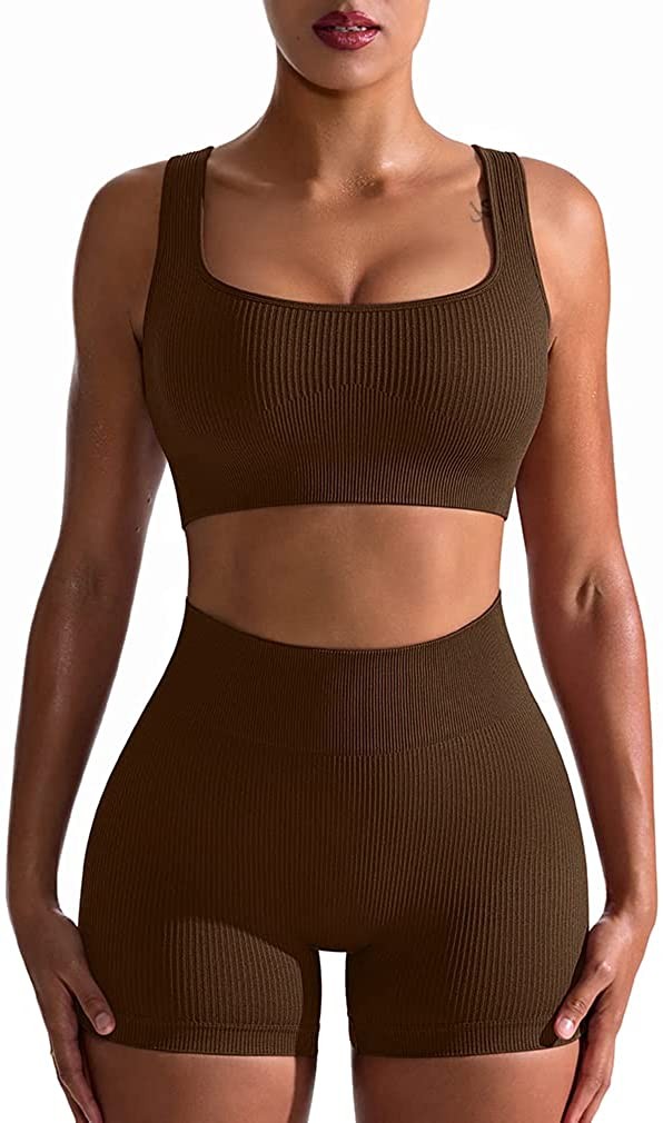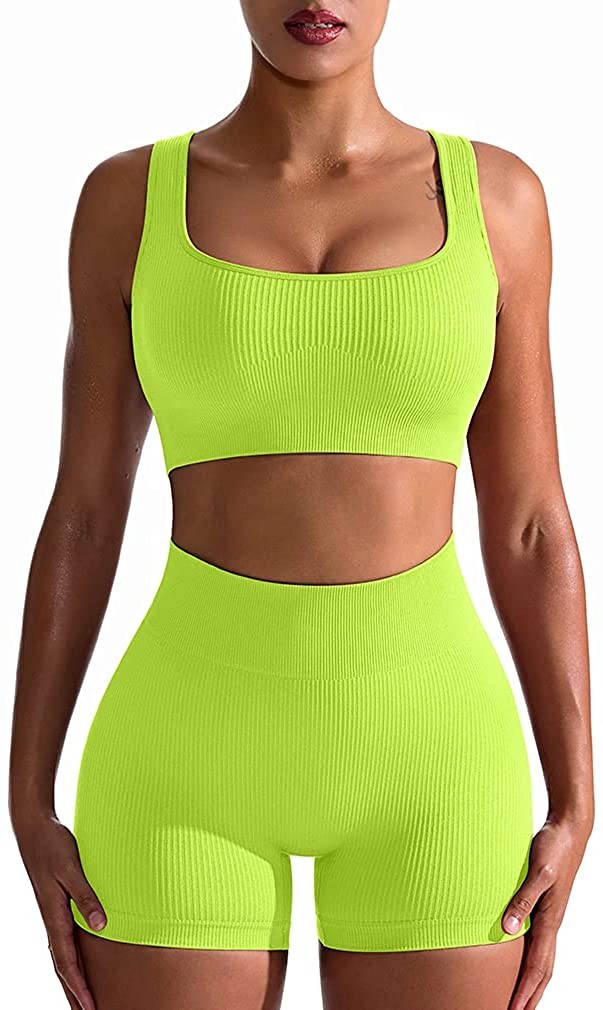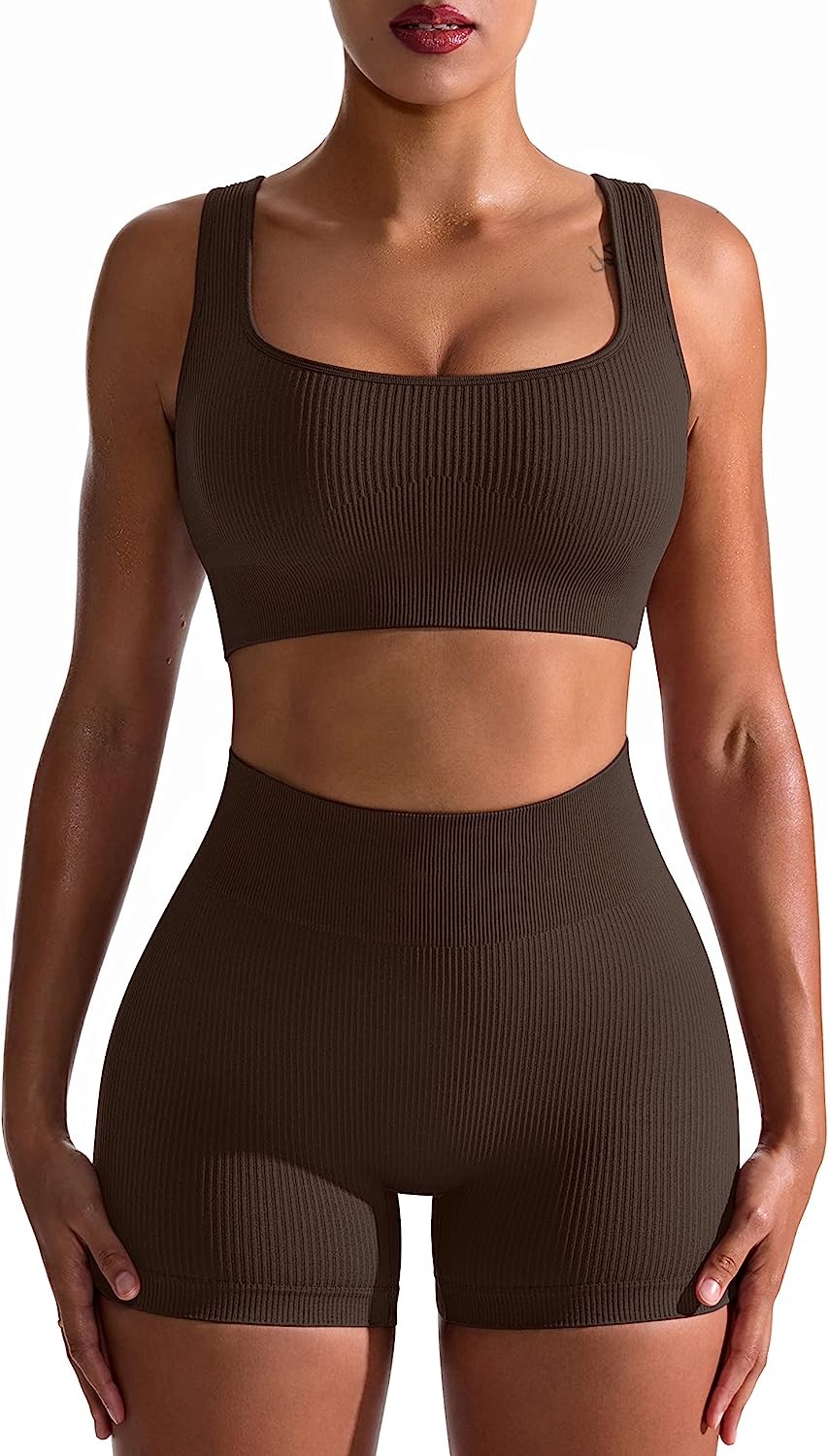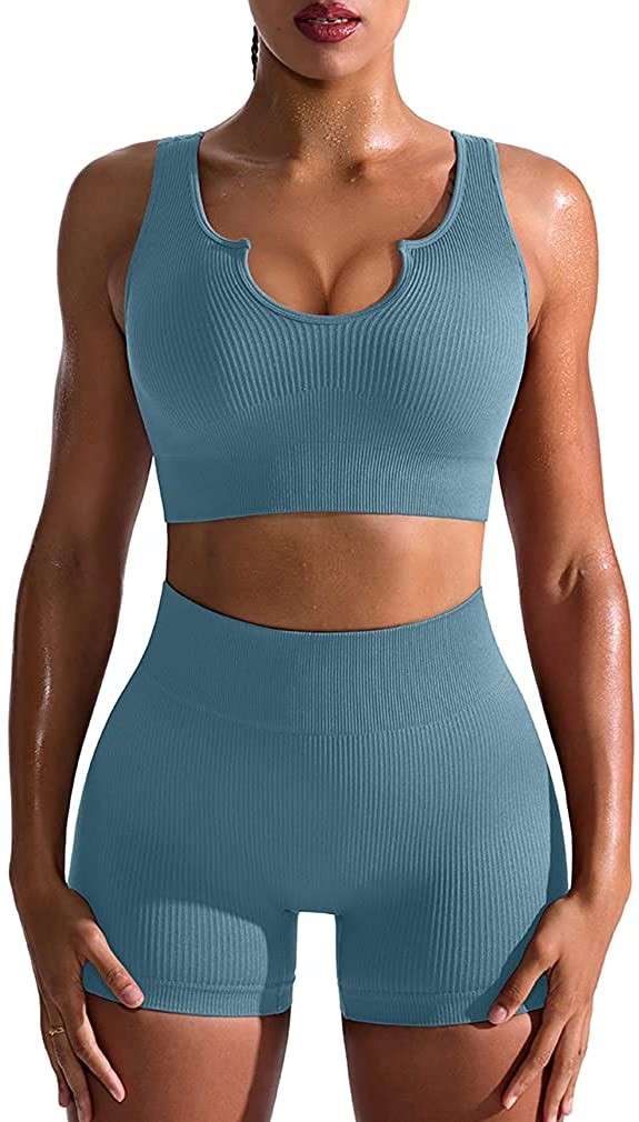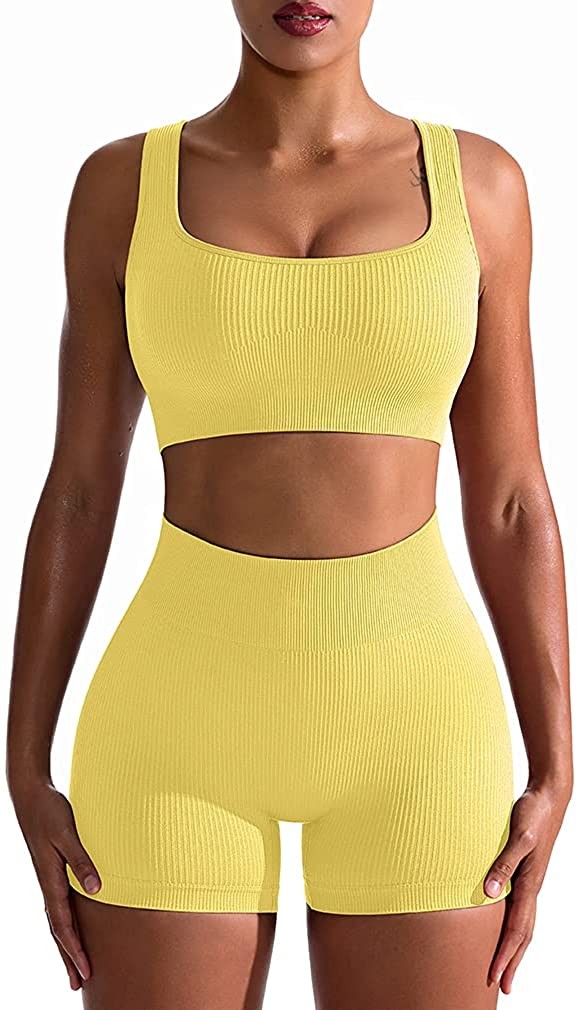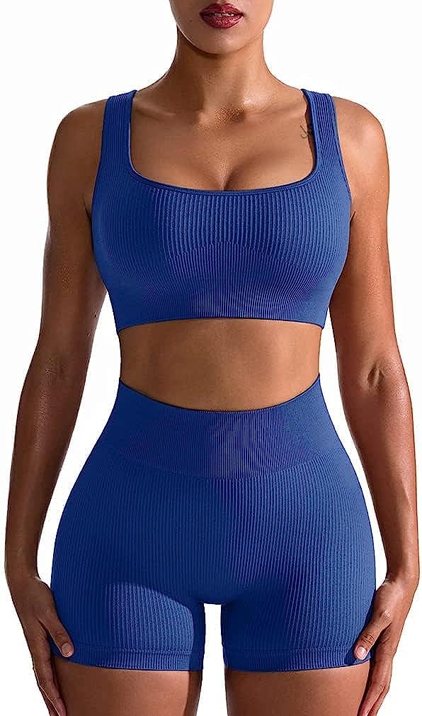 OQQ Workout Outfits for Women 2 Piece Seamless Ribbed High Waist Leggings with S