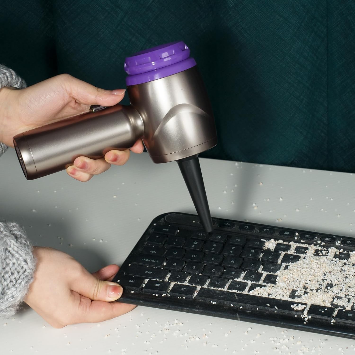 PeroBuno Air Duster for Computers, Mini Vacuum 2-in-1, 160000RPM Compressed Air, 2 Gear Brushless Motor Rechargeable Air Blower - Cordless Canned Air - Keyboard Cleaner
