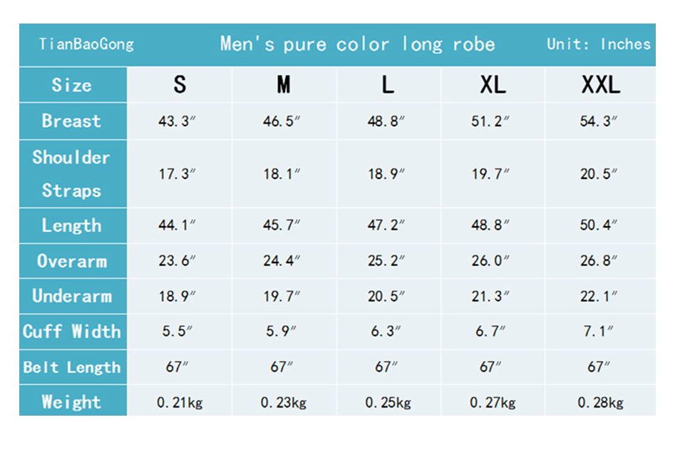 Men Long Robe Size Chart