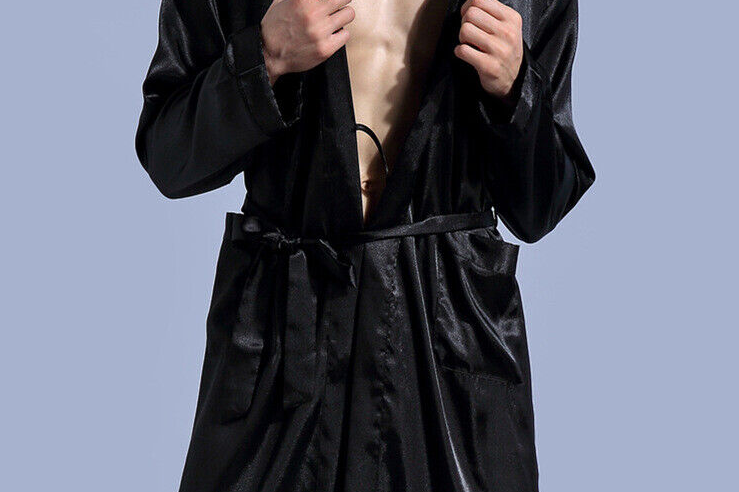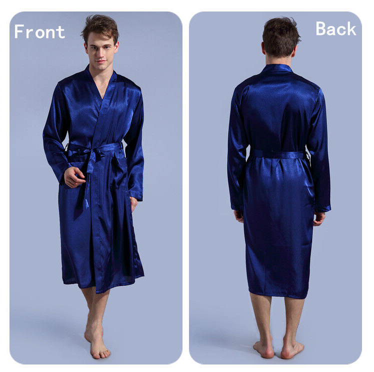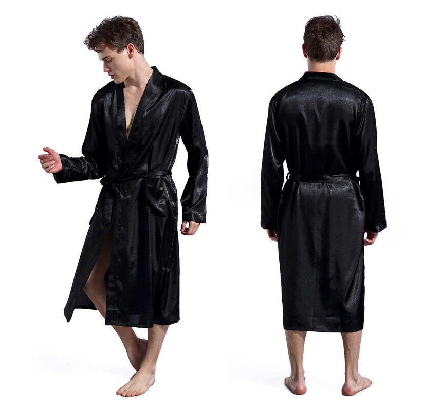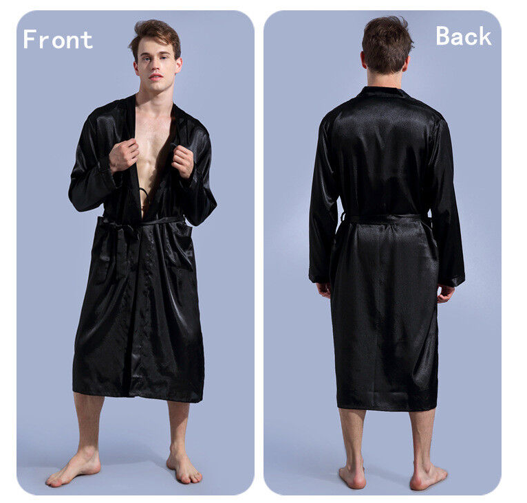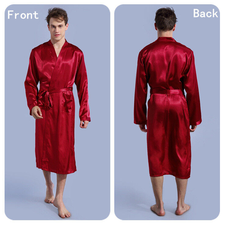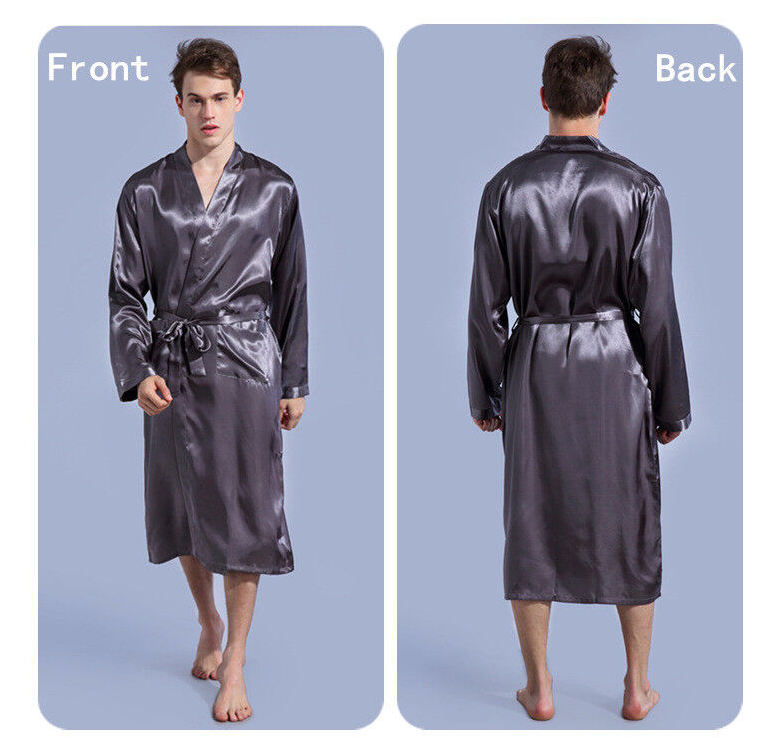 Personalized Mens Satin Silk Pajamas Kimono Robe Dressing Gown Pjs Loungewear