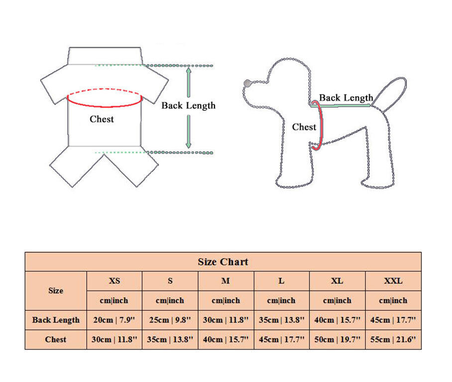 | Back Length | 18-22cm |7.1''-8.6'' | 23-27cm |9.0''-10.6'' | 28-32cm |11.0''-12.6'' | 33-37cm |13.0''-14.5'' | 38-42cm |14.9''-16.5'' |