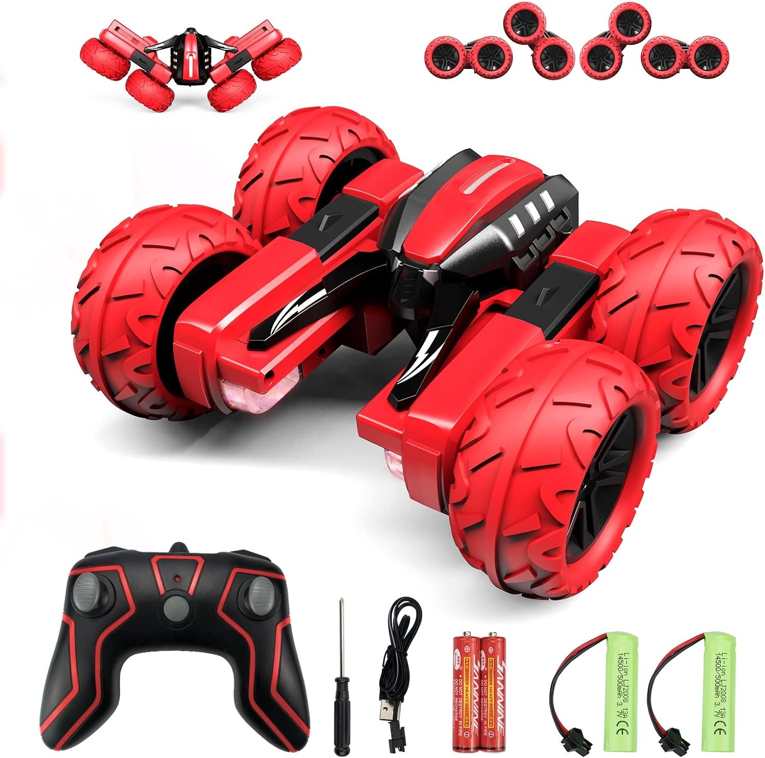 Remote Control Car, Hobby RC Car Stunt Car with LED Light Electric 4WD 2.4Ghz Double Side Rotating Racing Vehicle 360° Flips Offroad Kids Toy Cars for Boys Girls 6-12 Years Gift