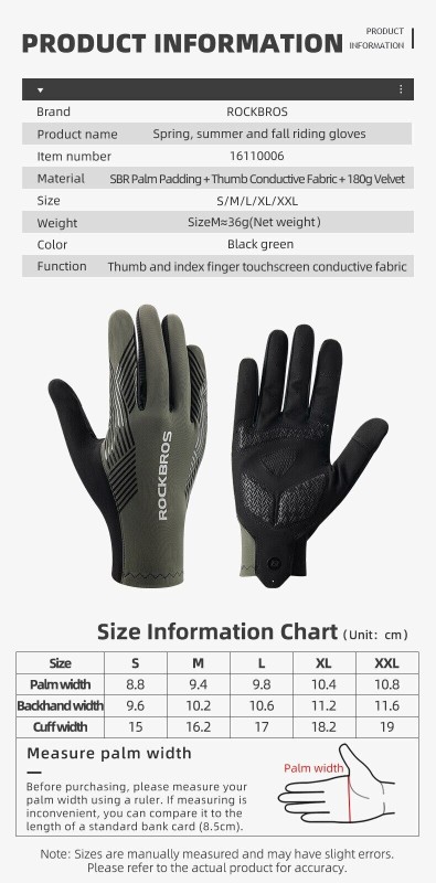 ROCKBROS Full Finger Cycling Gloves Breathable Non-slip Touch Screen Bike Gloves