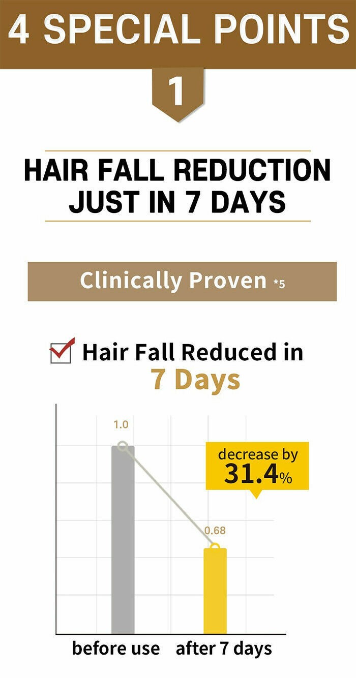 • Premium hair loss care ampoule - clinically proven to reduce hair fall in just 7 days*!