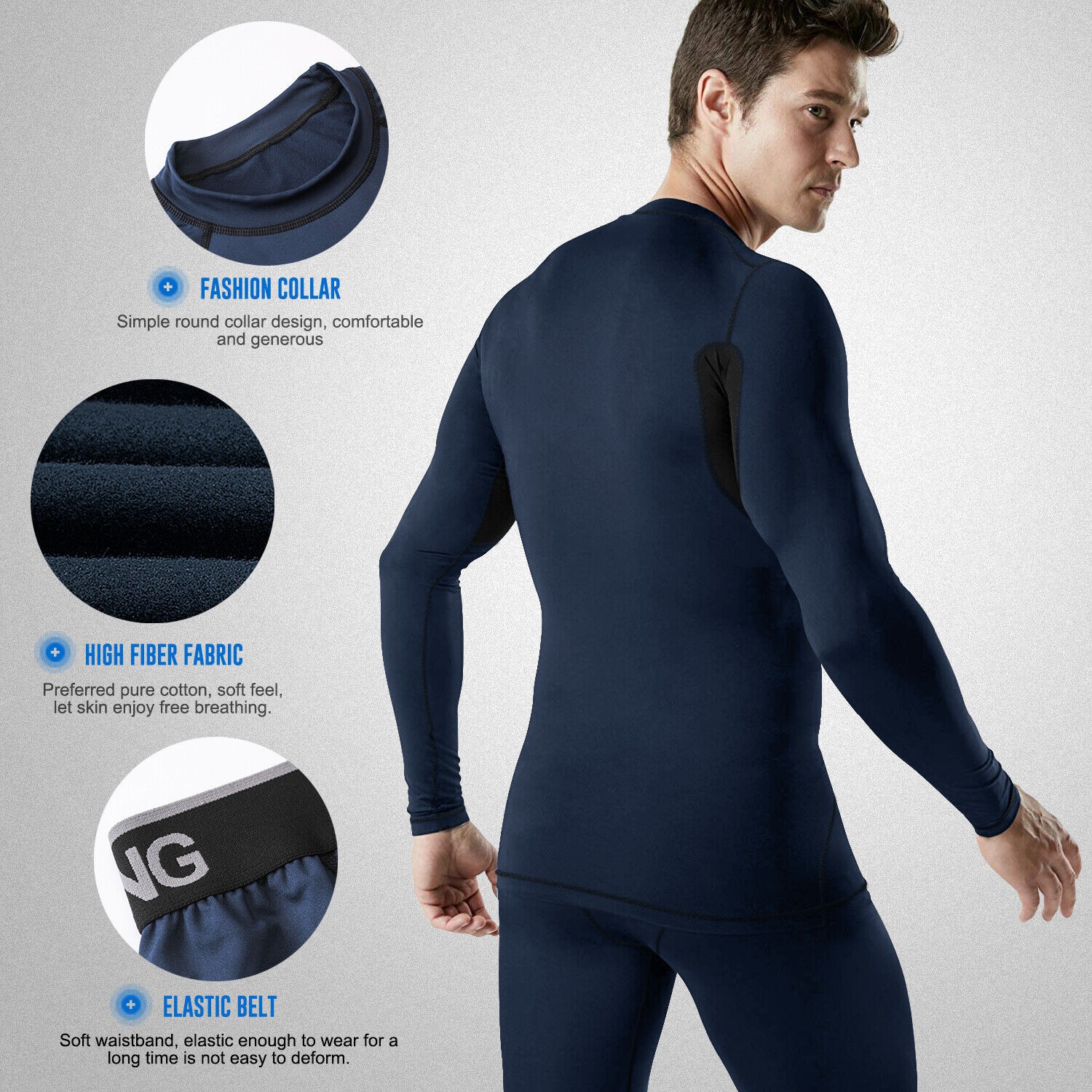 Thermal Underwear for Men Fleece Base Layer Top & Bottom Set Insulated Long John