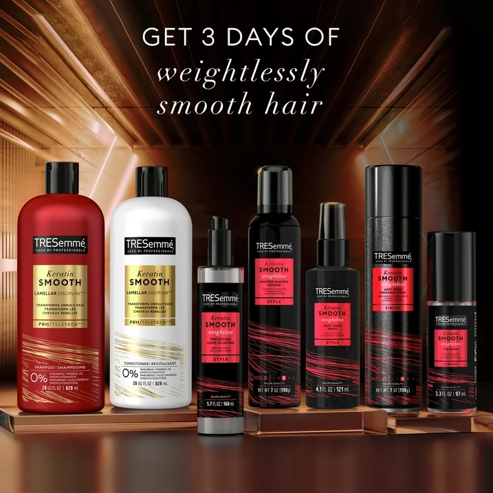 • REACH YOUR HAIR GOALS: TRESemmé Keratin Smooth Blowout Spray helps you stand up to flat curling irons, blow dryers and more by guarding against heat damage and breakage.