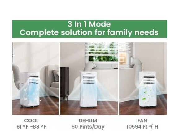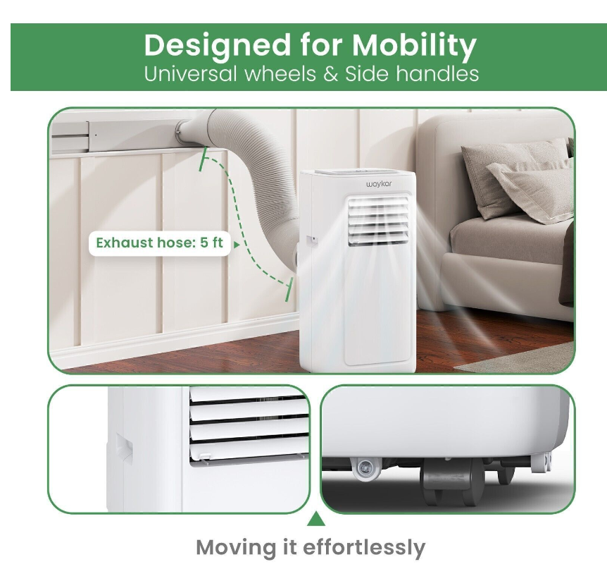 3 in 1 FUNCTIONALITY - The compact and modern air conditioner combines 3 efficient function with cooling, dehumidifier and fan to meet all your cooling & ventilation needs. Waykar portable AC unit will keep air both dry and cool in easy operation, provides the healthy and cool air environment, which is the Best Option to save money and space.