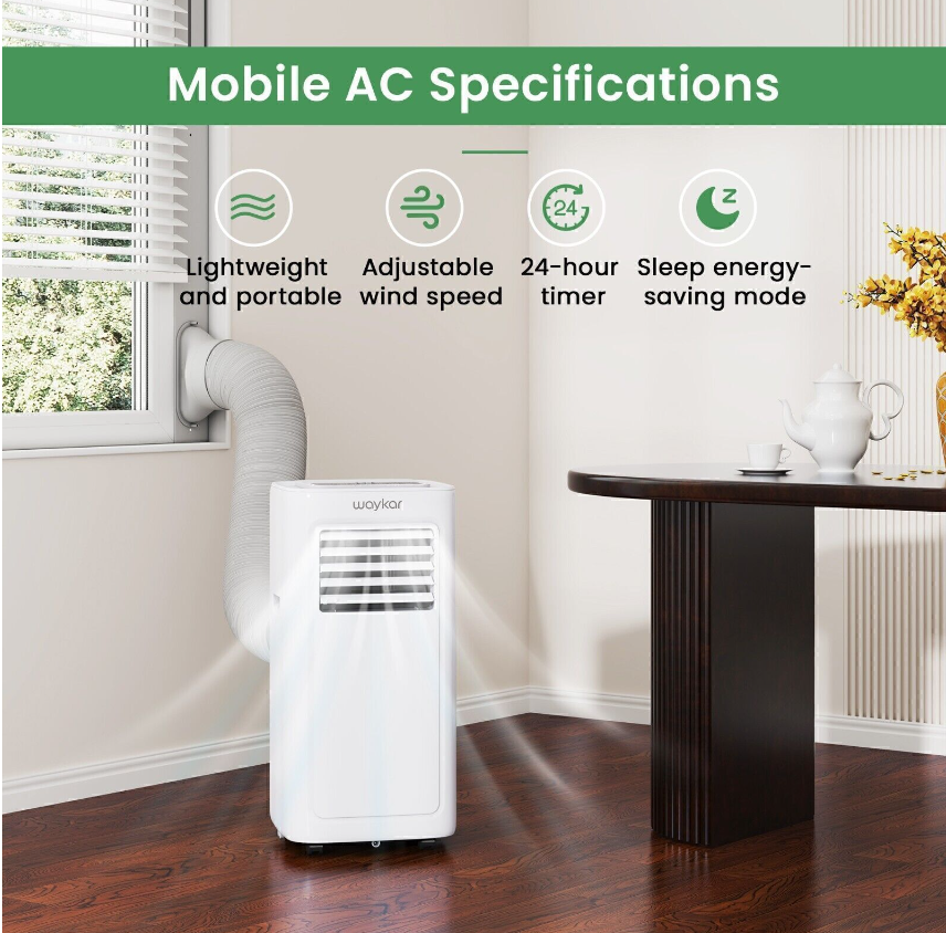 Waykar 9000 BTU Portable Air Conditioner Cooler All-Year-Around Dehumidifier NEW