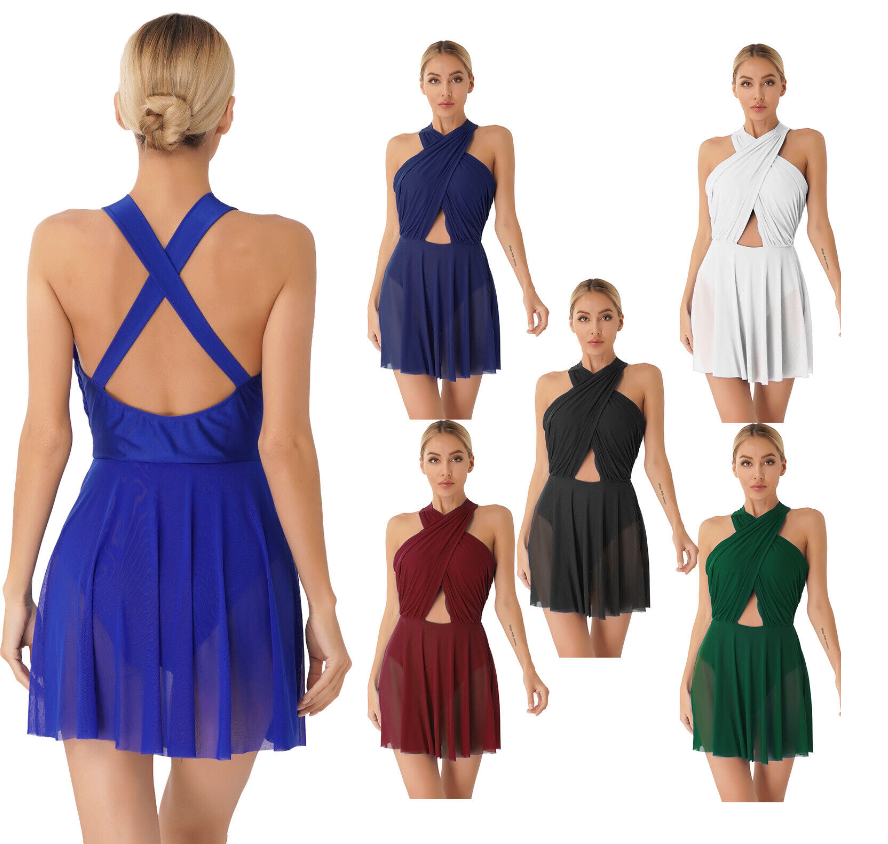 Women's Dress Lyrical Sleeveless Criss Cross Ruched Ballet Leotard Dance Costume