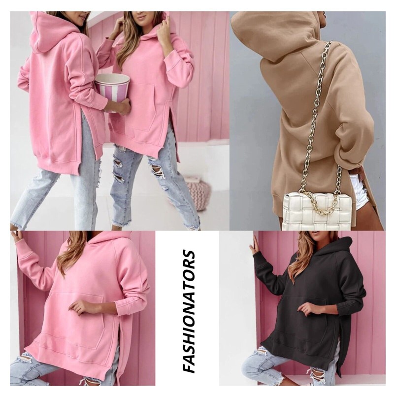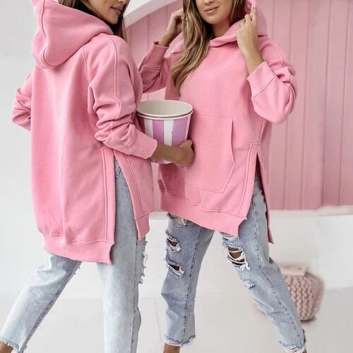 Womens Fleece Hooded Ladies Long Sleeve Zip Up Sweatshirt Pockets Jacket Dress