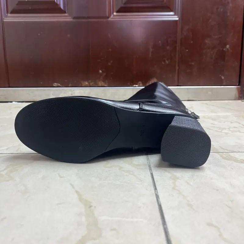 Women's Solid Color Boots, Back Zipper Chunky Heel Casual Soft Sole Boots, Mid Calf Versatile Winter Shoes